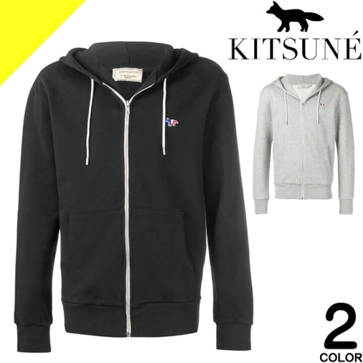 Maison Kitsune メゾンキツネ キツネワッペンフルジップスウェットパーカー Zip Hoodie Tricolor Fox Patch ポルトガル製 通販